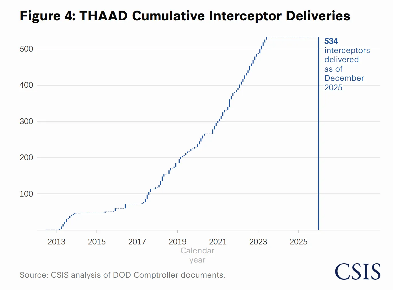 As of the start of the June 2025 “12-Day War” the total number of THAAD interceptors in the US inventory numbered 534, according to Rumbaugh’s research.
