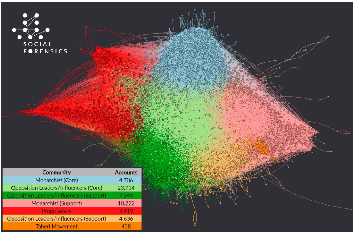 Further detail on Israeli online dark arts pushing Pahlavi is provided by a July 2023 report from data analytics firm Social Forensics, on “state-sponsored platform manipulation” during the 2022 protests in Iran. The investigation concluded Tehran was the victim of wide-ranging cyberwarfare operations throughout this period. This included “disinformation, smears, and threats” emanating from a vast nexus of bots and trolls on Twitter. While the report did not make a definitive attribution for this malign activity, its findings point unambiguously in Tel Aviv’s direction.