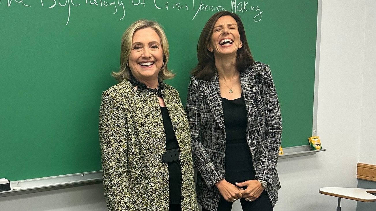 Feature photo | Keren Yarhi-Milo poses with Hillary Clinton during Clinton’s 2023 guest teaching stint at Columbia. Photo | Facebook | Hillary Clinton