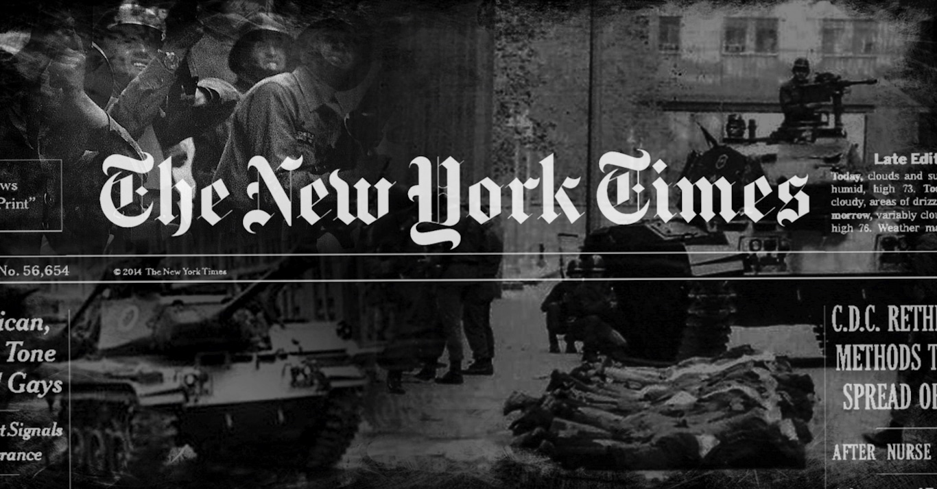 Newsrooms across America are sent advanced copies of the Times’ front page so they will know what is “important news” and adjust their own coverage accordingly. In this way its influence extends well beyond its nearly 5 million subscribers, its output becoming the first draft of history. Yet, when it comes to US intervention, the Times offers its “consistent support” for American actions around the world, Hudson says, claiming that the latest Bolivia example “very much followed this trend.” Indeed, there has rarely been an effort at regime change that the paper did not fully endorse, including the following six examples.