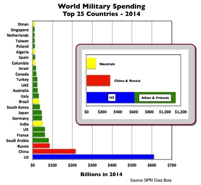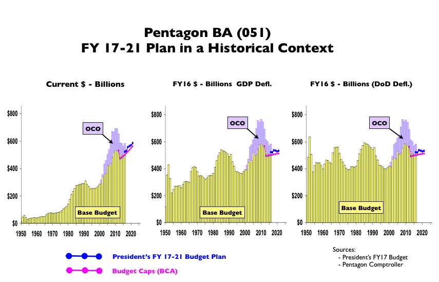 Yet despite the GWOT’s astronomical cost, forces deployed and combat tempos are minuscule when compared the those of the far lower cost Viet Nam War. Nevertheless, the top uniformed and civilian officials in the Pentagon are whining to Congress that these tepid tempos have created a looming readiness crisis. They assert the relatively small cutbacks in the future growth implied by the budget caps of Budget Control Act of 2011 to what is by far the largest defense budget in the world is now the “gravest strategic danger” facing the United States!
